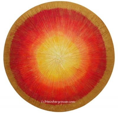 Die Energieräder werden auf Holz oder Leinwand gefertigt und können in verschiedenen Grössen und Farben bestellt werden.